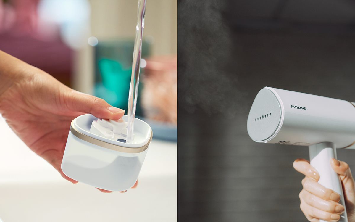「飛利浦可摺疊輕巧掛燙機」(STH3020)一支在手,隨掛隨燙,30秒效率熨燙術瞬間搞定衣物皺摺,全新的熨燙體驗就此展開。