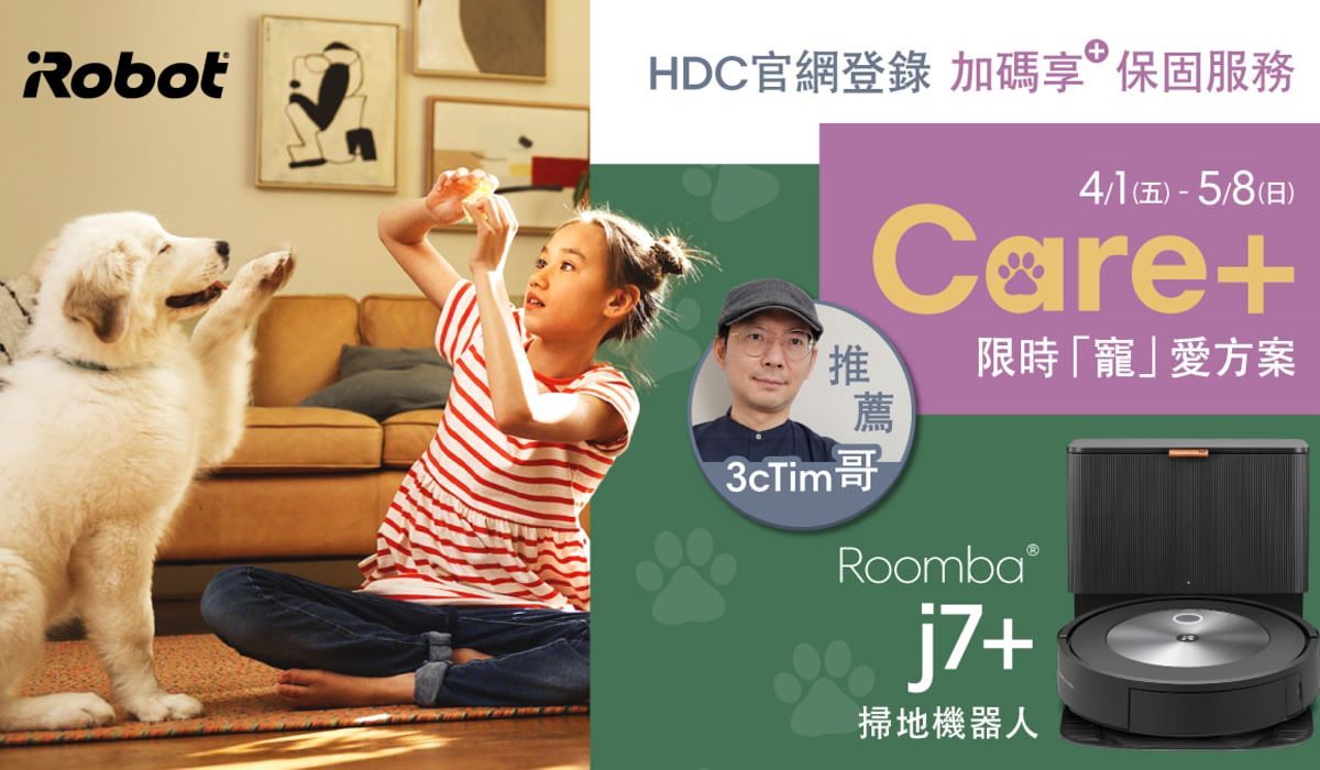 iRobot®祭出「iRobot® Care+限時『寵」愛保固活動」,4月1日至5月8日期間凡於來思比科技指定通路購買Roomba® j7+掃地機器人,並於10日內完成官網線上保固與活動登錄之手續,即可享有購買日起90天內輾到貓狗固態糞便,免費兌換一台新機的加值服務,購機保固方案詳情請見iRobot®>>活動網址。