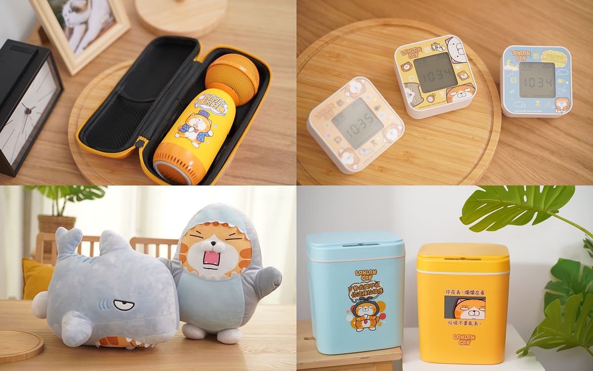 「白爛貓超愛演門市快閃購/集點送」活動,首推聚會氣氛擔當的「無線藍芽麥克風」,多場合適用,走到哪都能盡情歡唱;視訊直播會議、遠距上課必備的「環形補光燈」,水潤肌膚完美出鏡;首度推出的「刨冰機」,宅家也能輕鬆製作沁涼消暑冰品,另還有「三角靠枕+抱枕」、「體重計」、「感應式垃圾桶」、「可站立直立傘」以及「鯊魚變裝娃娃」等實用好物,搭配白爛貓超有梗的直白搞笑流行用語,療癒粉絲的厭世日常!