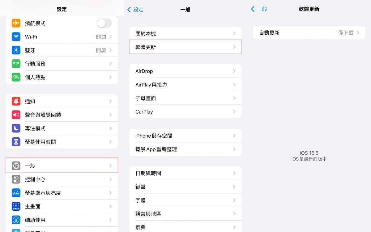 有時手機APP操作卡卡不順,其實是因為iPhone系統需要更新,而非網路連線有問題,這時需要去「設定」→「一般」→「軟體更新」→下載並進行iOS系統的更新,完成系統升級後,手機順暢度就會有感提升囉!