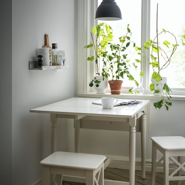 INGATORP折疊桌靈活多變,可依需求掀起單側或兩側的桌板延長桌面面積,或是單獨使用中間桌面等三種方式。桌面底下的抽屜可收納餐具、紙巾或蠟燭,絕版品出清現省$2,000元,無論親友來訪或需要大桌面辦公通通都能輕鬆搞定。