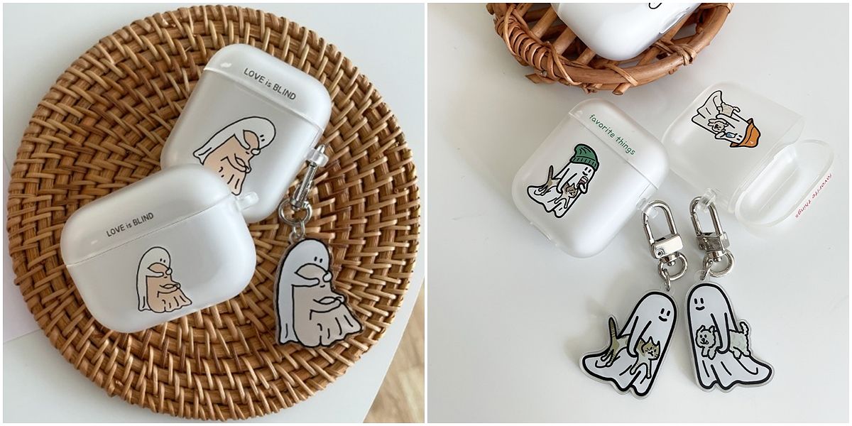 Percentage家的幽靈有好多的不同的造型,沒想到幽靈跟我們人類一樣都是貓控,走到哪都要帶著貓!而且連鬼的愛都是盲目的~AirPods保護殼也都有推出兩種款式的設計來存放不同代的耳機喔!