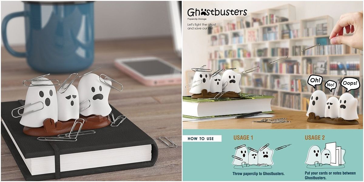 上班時總覺得煩悶嗎?那就拿起迴紋針打擊魔鬼吧!鬼魂有吸附迴紋針的功能喔~而且鬼魂間的縫隙還可以放置MEMO字條外,還可以當成集線器使用呢!這樣桌上就不會再亂糟糟了~
