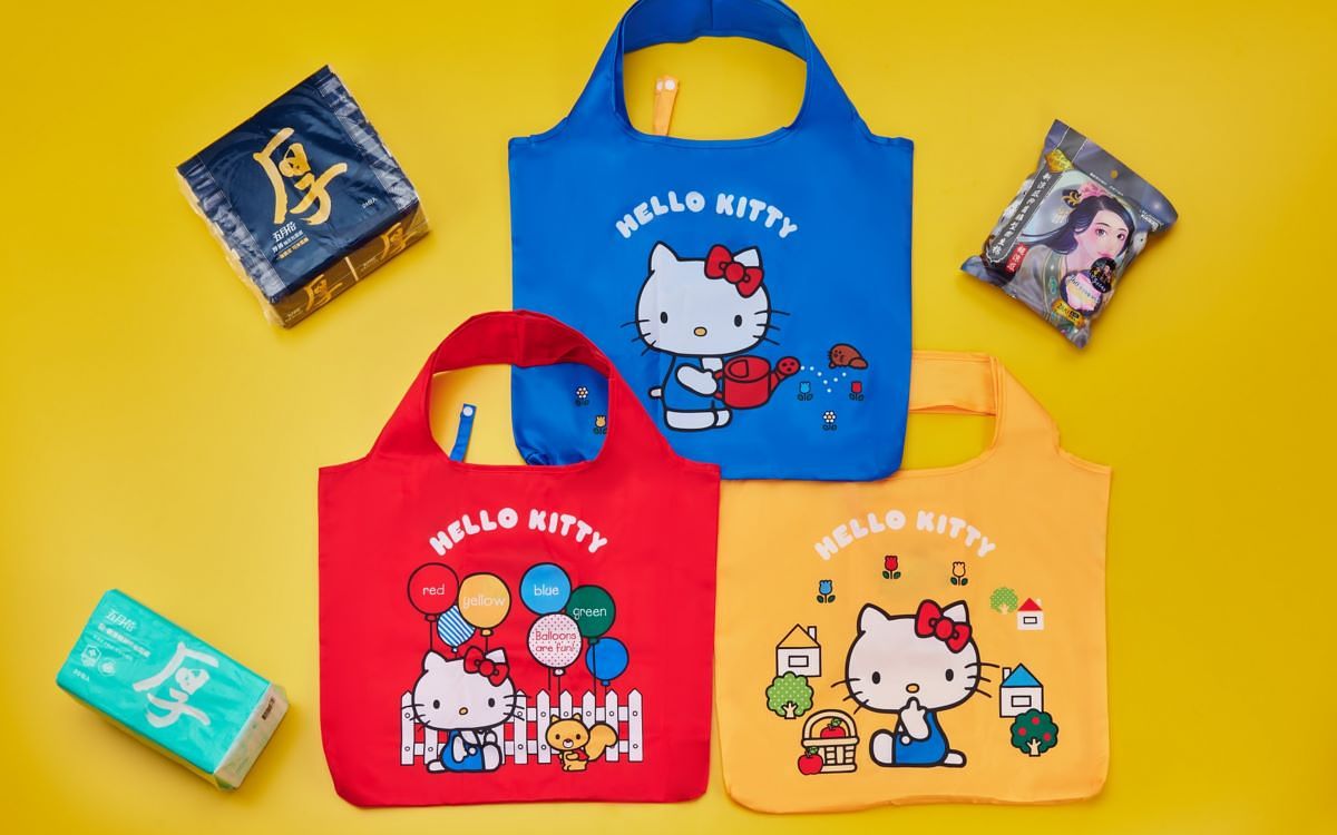 自9/30至12/29活動期間,消費者持福利卡購買日用品單筆消費每滿100元,即可獲得1 Hello Kitty積分,只需集滿2或6積分即可加價換購Hello Kitty授權商品任一款,共有獨家5種品類,包含「萬用春捲袋」、「感應泡泡充電給皂機」、「大容量多功能收納籃」、「感應自動開闔垃圾桶」、「陶瓷負離子摺疊吹風機」等,其中推薦最好入手的「萬用春捲袋」,共有沉穩藍、熱情紅、亮麗黃三款顏色,不僅實用環保還能依照心情自由搭配,只需使用6積分加55元或購買任一日用品加70元就能帶回家。