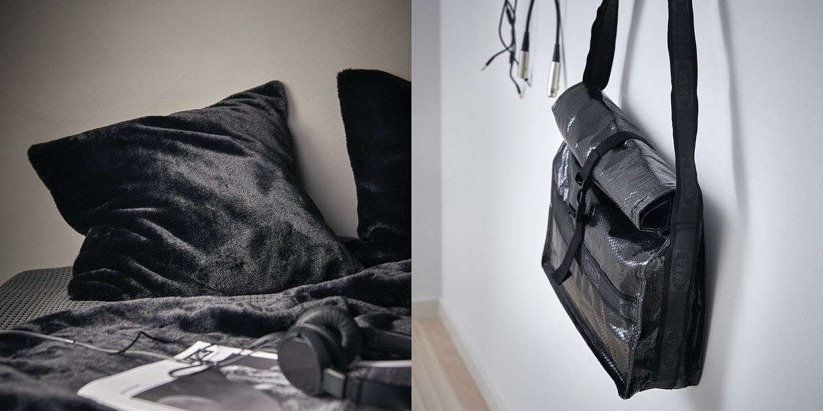 極黑美學是IKEA OBEGRÄNSAD系列想傳達的空間概念,黑色聯想到沉著與無限可能,也是最具個性展現的色彩。OBEGRÄNSAD系列靠枕、萬用毯,絨毛的觸感柔軟又舒適,能使用在座椅靠背或沙發等任意角落,在生活空間創造出舒適兼具極黑美學。除了家具家飾品之外,隨身小物也能展現個人色彩與靈感,使用OBEGRÄNSAD系列斜肩背包,捲收式的上蓋能輕易開啟,讓物品好拿取,輕鬆化身街頭最潮的亮眼代表。