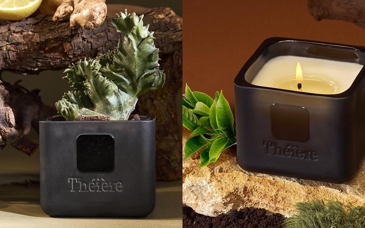 結合法式生活美學、台灣茶葉文化與永續環保概念的香氛品牌Théière以茶壺法文為品牌名,除了向法式香氛致敬外,也隱喻著香氣就像濃縮了茶香精華在壺裡的概念而生。品牌主打中性清淡舒服味道,將蠟燭中注入茶葉微粒粉末,經過長時間淬煉帶來平凡卻不平淡的迷人香氣。此外,品牌更選用再生玻璃瓶器作為蠟燭容器,將瓶底做特殊挖洞設計,讓蠟燭使用完後還能成為盆栽,讓我們沈浸在香氛時,也能為地球盡一份力。