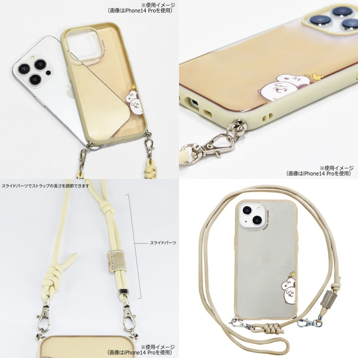 附有背繩手機殼為PC+TPU雙材質一體成形的構造,保護手機更為耐摔防撞,三種圖案設計都可見史努比低調地現身在手機右下方,探出頭來的模樣真的太萌!總繩長約70CM,也可以調節成喜歡的長度唷!
