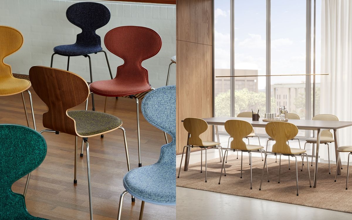 圖片來源:Fritz Hansen從1952年推出就造成轟動、最具標誌性的 Ant™ 螞蟻椅,下收腰線造型令人過目難忘,它一體成型的椅背和椅座是當年前所未見的創舉,升級訂製版本由九層實木木皮積層高溫加壓製成,2023年更多了前包覆布料的版本,這是 Fritz Hansen 織品和技術研發團隊堅持不懈的實驗的創新成果,椅身和軟墊包覆材質之間形成一道美麗動人的有機輪廓,突出 Ant™ 的經典設計曲線,同時增添了更豐富的色彩與織品溫暖感。