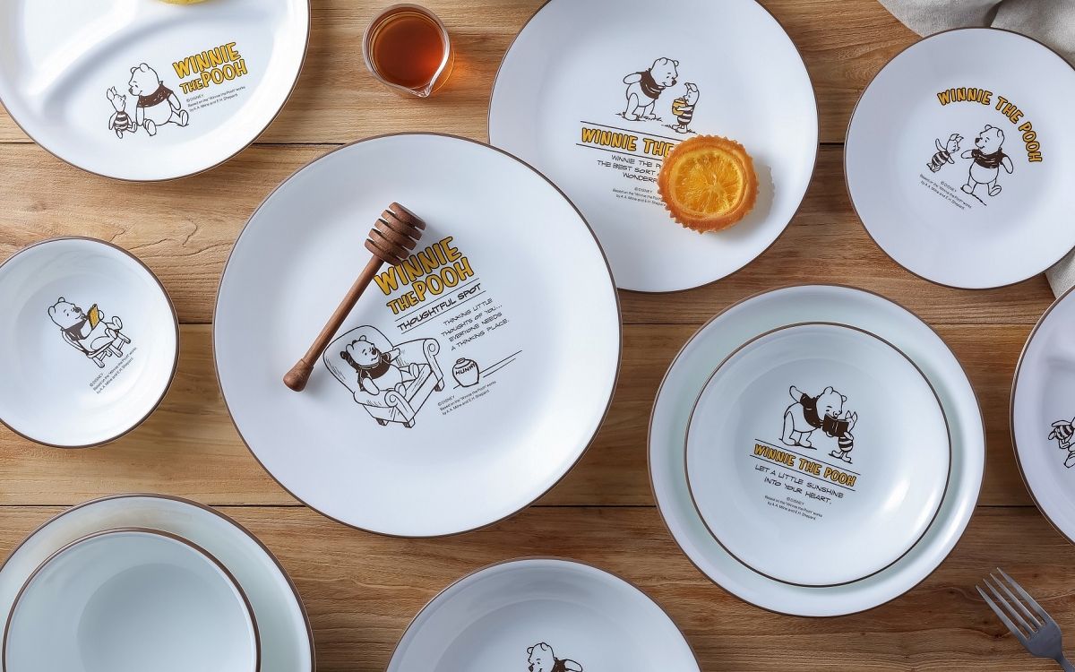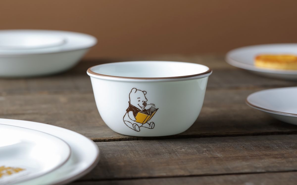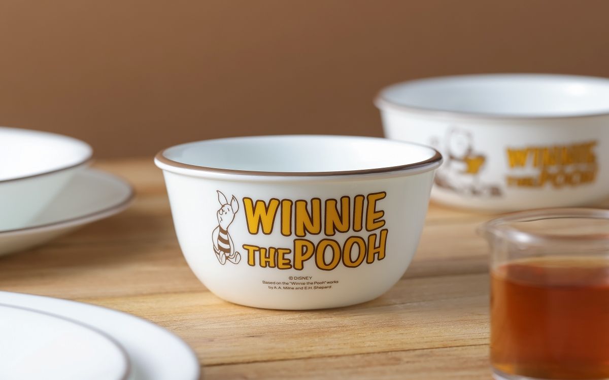 康寧餐具「小熊維尼 復刻系列餐盤」於週年慶期間在百貨通路首發開賣限量銷售,共推出6吋圓盤、6吋湯盤、8吋湯盤、8吋平盤、10吋平盤、900ml拉麵碗、韓式湯碗、沙拉碗、1L大湯碗、375ml飯碗共10款造型餐碗、餐盤,商品皆以套組方式銷售;此波活動強力推薦「小熊維尼 復刻系列」湯盤2件組(6吋湯盤+8吋湯盤),原價1,350元,優惠價799元,59折起,其中湯盤更是過往銷售成績中最受歡迎的器型選項。康寧餐具「小熊維尼 復刻系列」有別於過往繽紛色系風格,採用深棕及芥末黃色調元素繪於餐盤圖面及盤緣處,溫暖的用色營造出深深懷舊復古氛圍感。