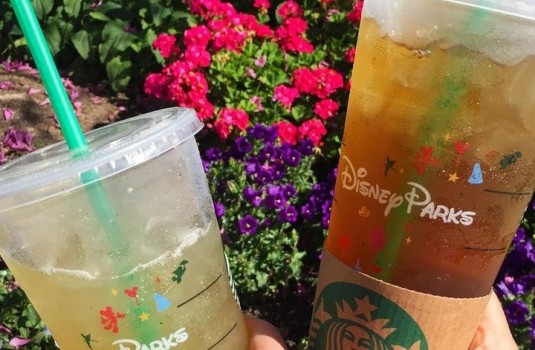 在迪士尼這個夢幻國度,連星巴克也煥然一新!每款杯子的包裝都有著迪士尼限定的可愛塗鴉,連喝飲料也不能放過!