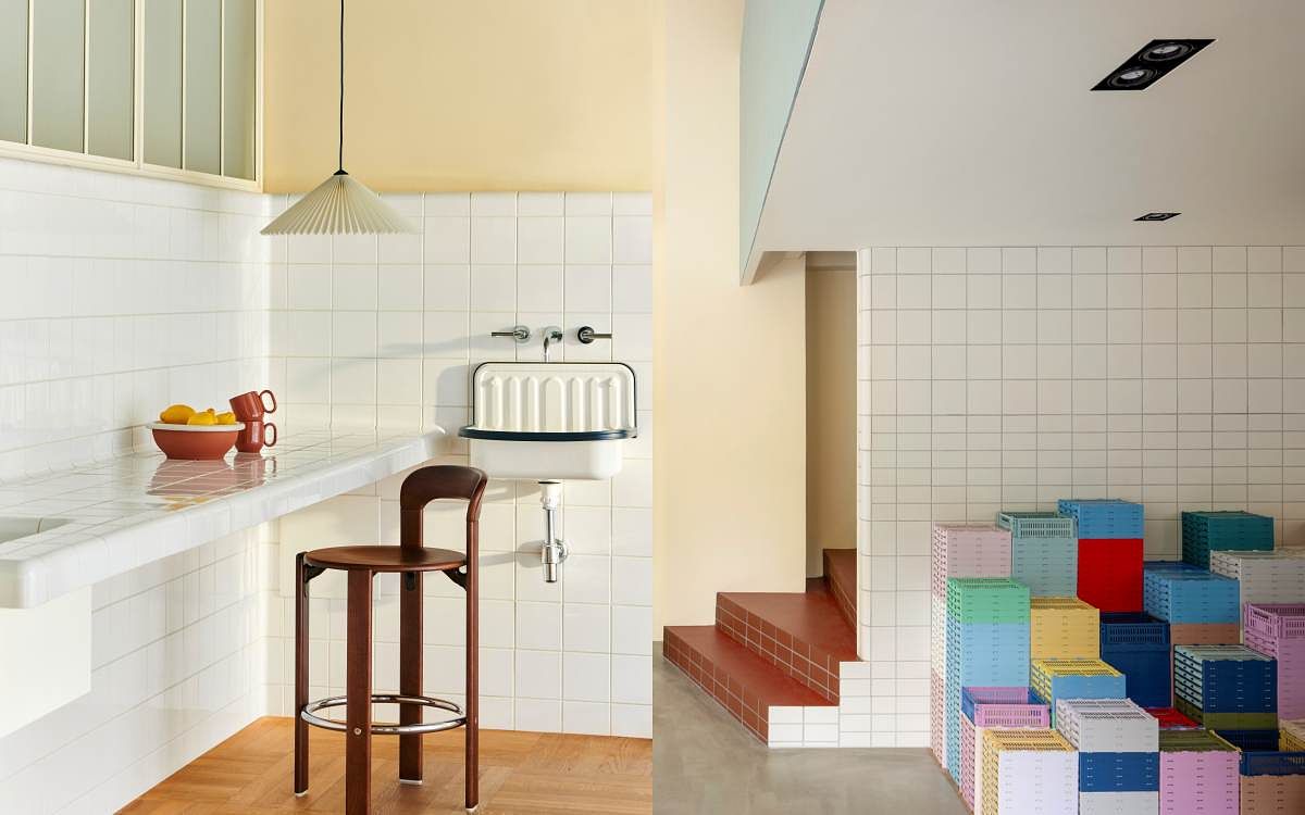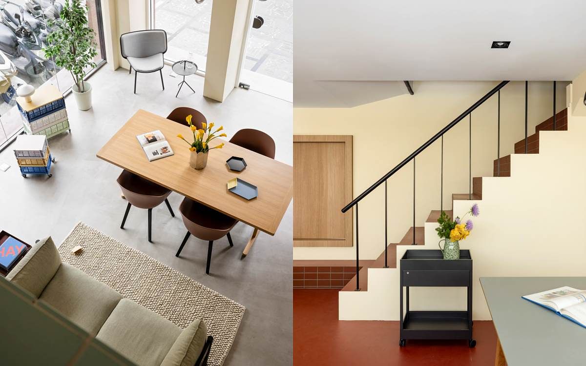 圖片來源:HAYHAY台北旗艦店(HAY TAIPEI Flagship Store,以下簡稱HAY TAIPEI)選址於台北仁愛路一片綠意前開展全新門戶,也為這條精品家具街帶來屬於斯堪地納維亞式的慢活態度。HAY TAIPEI店裝大量還原丹麥HAY House原址的空間細節,牆面採低飽和度的綠、米與淺灰色,交織出視覺和諧舒適的北歐氛圍,也與色調濃烈的梯間形成鮮明對比,展現HAY大膽爽朗的用色哲學。店內多處出現線條滑順的轉角磚,設計靈感來自創辦人Hay夫婦的家,且由Rolf Hay與丹麥總部團隊共同打造。