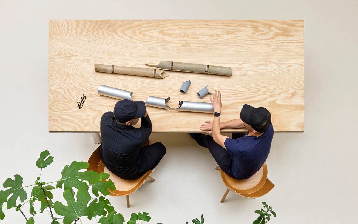 圖片來源:HAYBOA TABLE由慕尼黑設計師Stefan Diez設計,靈感源自日本傳統竹子工藝。可客製化尺寸的桌面有多種材料供選擇,包括油氈、層壓板、木材或玻璃,下方管狀框架由回收鋁(Hydro CIRCAL)製成,框架可以加裝插座和電線等配件。