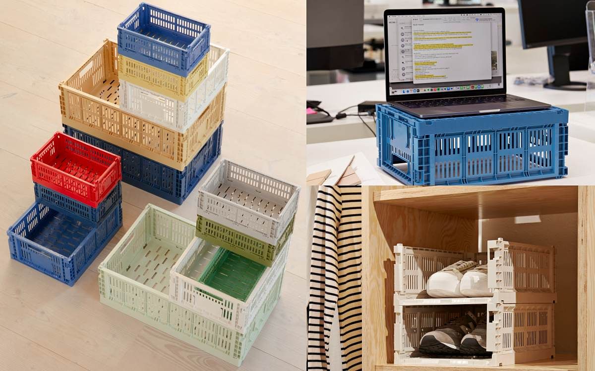 圖片來源:HAY顏色鮮豔豐富、尺寸多種選擇,Color Crate收納籃由100%回收的消費後廢棄物製成,另外M size和L size附有蓋子,底部還可加裝輪子與鎖定機構,使置物收納更具機動性。