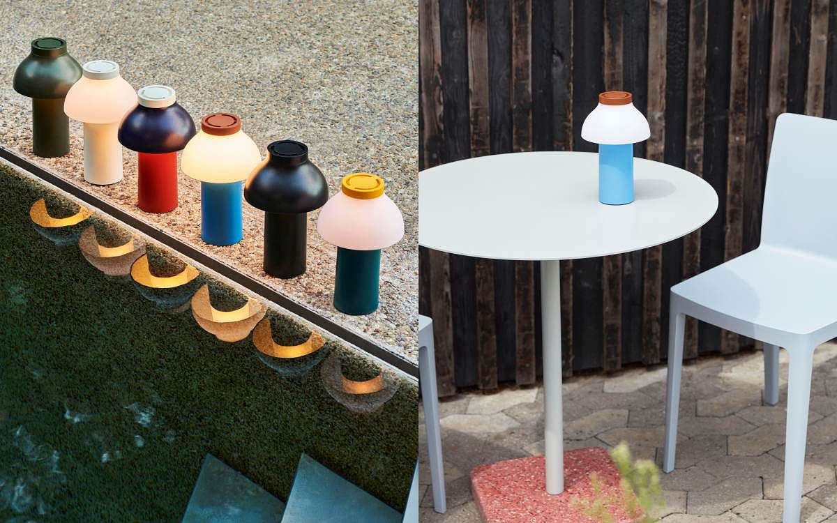 圖片來源:HAY法國設計師Pierre Charpin設計的PC portable便攜式燈,採用堅固的PP塑料製成,具有啞光防刮和防水表面。使用充電電池,完整充電後可持續使用長達10小時,底座上配有按鈕控制三段調光器及 USB充電線孔。