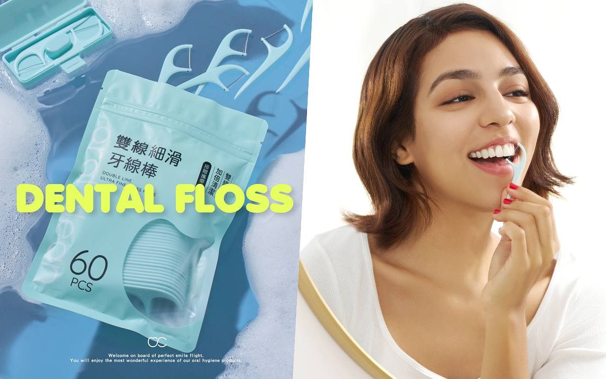 【雙線細滑牙線棒】售價:NT $49/60支/包(附贈攜帶盒乙個)
