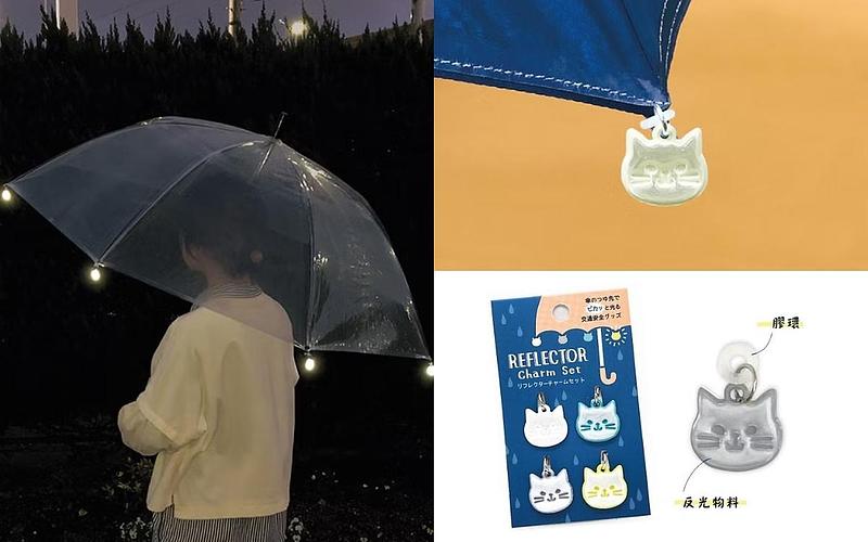 這個看似不起眼的小掛飾,是掛在傘骨的最前端的,且掛飾是以反光材質製作,在夜間將會「閃閃發光」,讓妳晚上走路時更加安全喔!