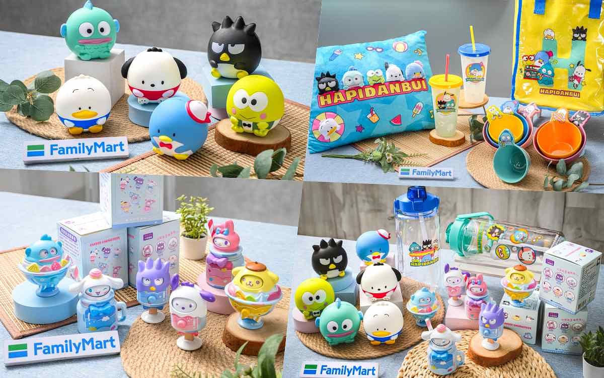 三麗鷗男團首次在台灣登場,除了飲料冰品加價購,「全家」同步與三麗鷗男團HAPIDANBUI聯名推出集點加價購活動,團員分別由人魚漢頓、酷企鵝、貝克鴨、大眼蛙、山姆企鵝、帕恰狗組合而成。