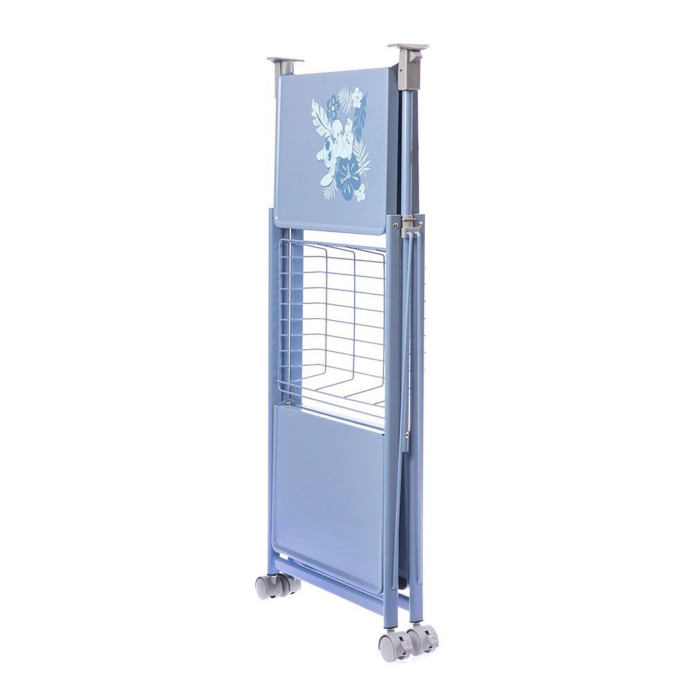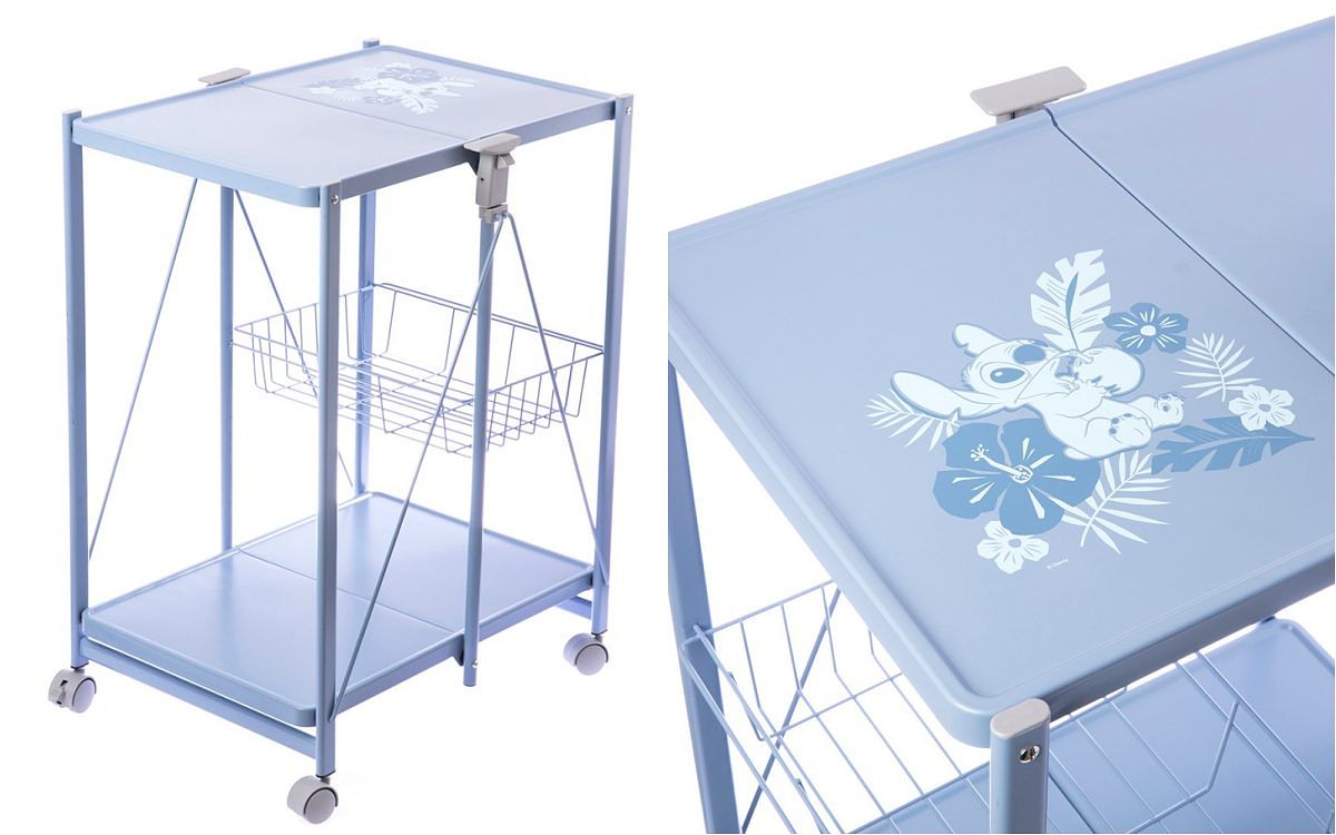 配色柔和的寶寶藍摺疊推車,平常不用的時候可以簡易地摺疊收合起來,一鍵式收取超級方便!史迪奇圖案印刷在推車的桌面上, 看到心情都會變好!