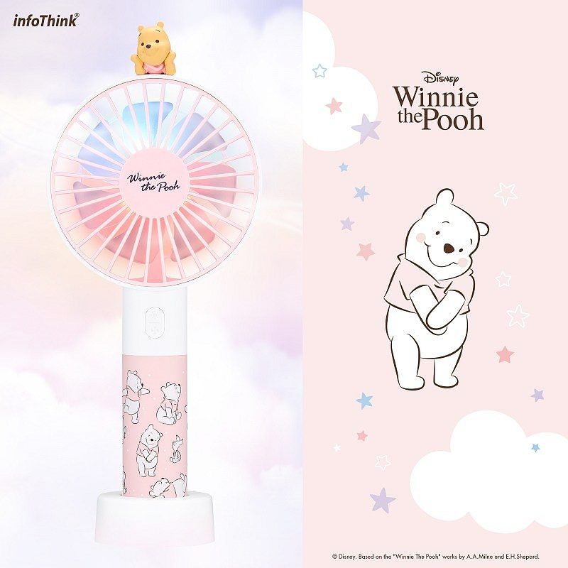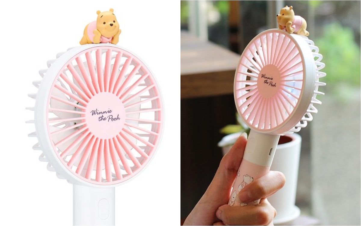 夏天不能離身的小電風扇,小熊維尼版本真的太可愛!本身帶有3段風速變化,可以手持、桌立、頸掛三用,吹起來還有特殊燈光效果!