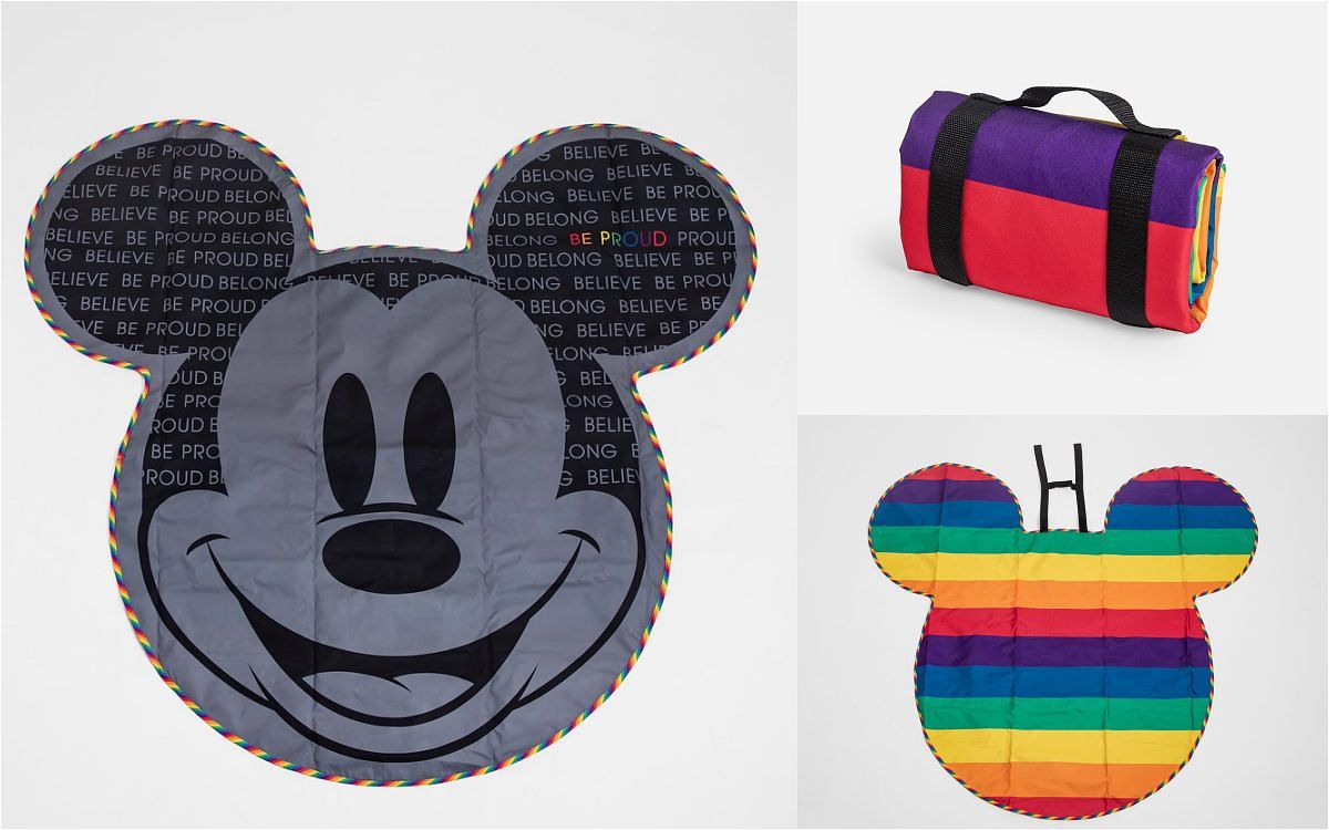 HOLA推出的迪士尼彩虹系列,設計核心不僅很有意義,風格也很時尚。平常若是不使用可直接捲折收納,打開野餐墊之後是一個可愛的米奇灰色大臉,耳朵上印著「BELONG BELIVE BE PROUD」,翻到背面是繽紛的彩虹色!放在家中當地墊地毯也超適合!