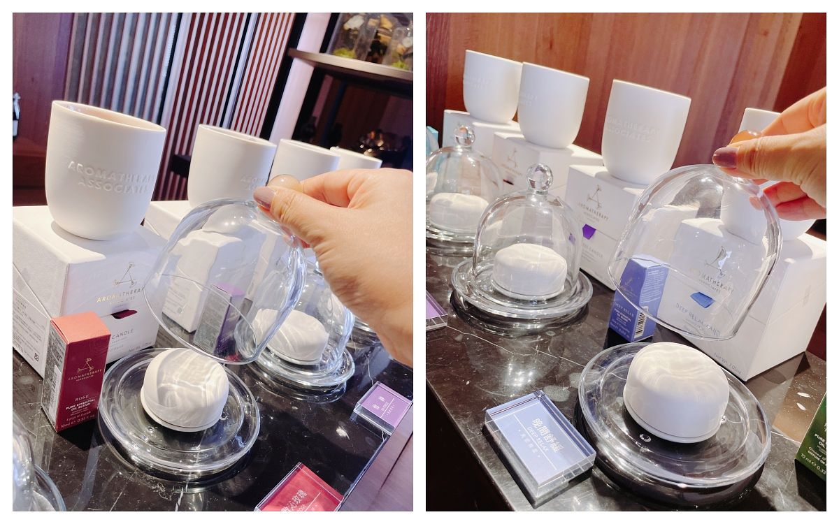 現場也陳列了聞香區,但同樣味道變成蠟燭或沐浴油時,也都會有些微不同!這就是聞香最有趣的地方!