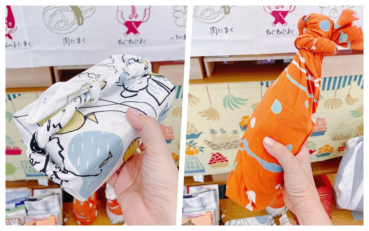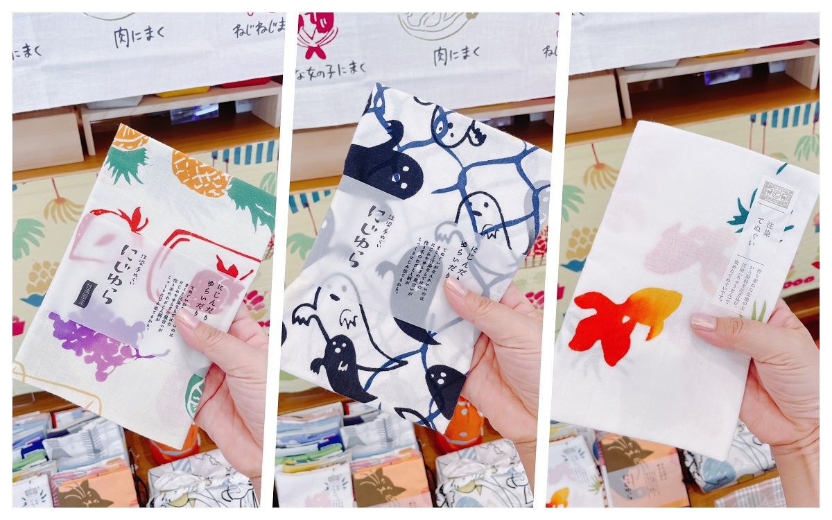 我也非常喜歡手拭巾系列,長長的尺寸可掛在廚房、浴室等地方用來擦手,最主要是圖案都非常可愛,最左邊的水果圖案是台灣限定喔!另外長長的尺寸還可以包土產、酒瓶。