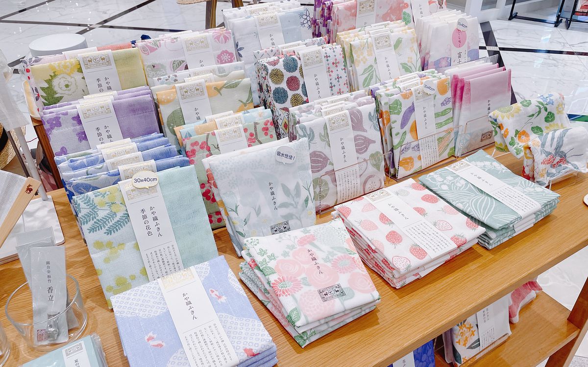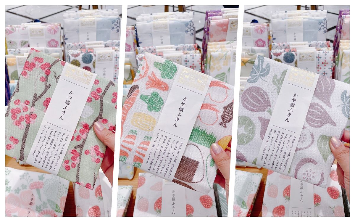 我最喜歡的就是「蚊帳織方巾」系列,不要看它的圖案那麼可愛漂亮,它其實就是“抹布”!而且它真的是蚊帳,更是奈良早期最大的產業,但後來慢慢沒人使用蚊帳了,才將這吸水力很好的蚊帳織,用來做成廚房雜貨!