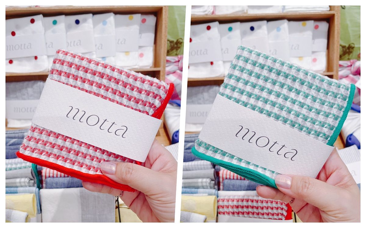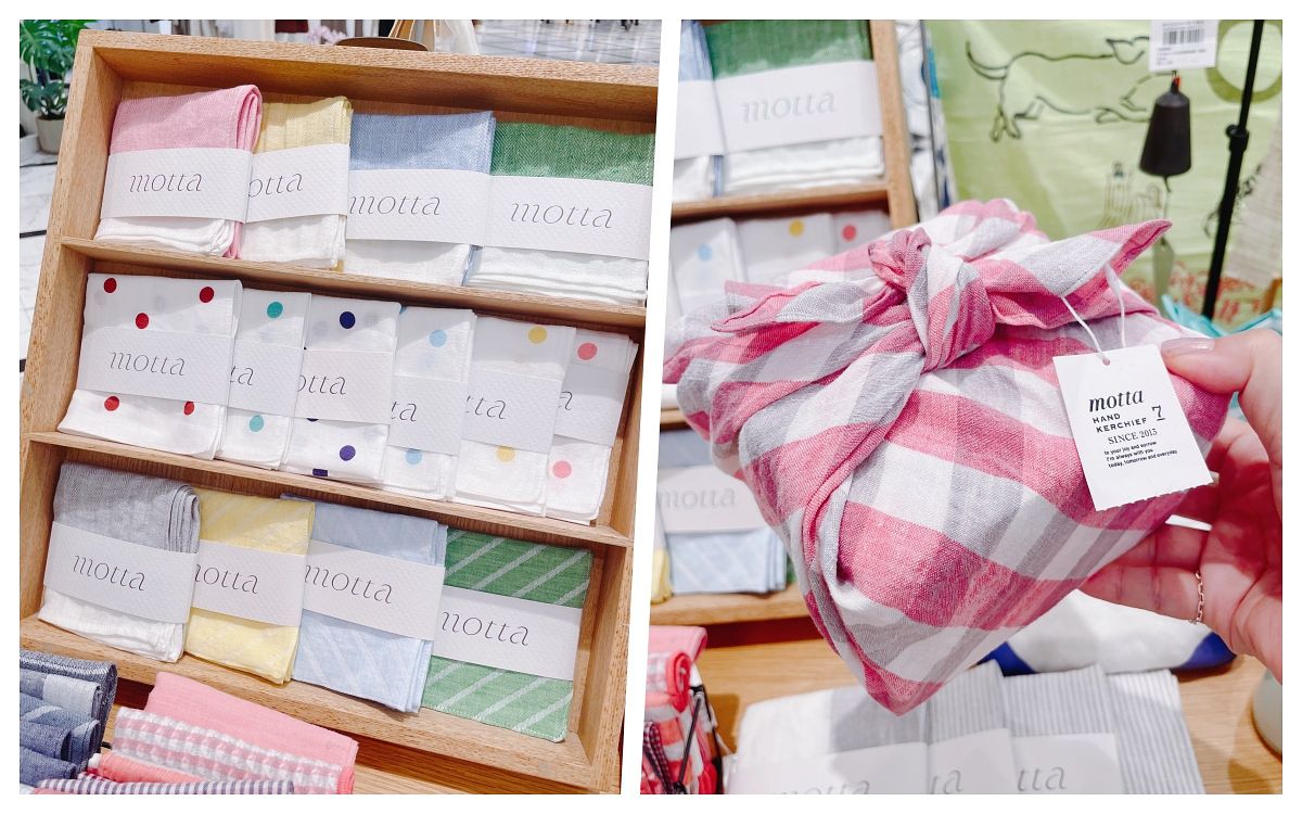 「motta」也是「中川政七商店」的自產品牌,是一個致力於迎合每日心情變化、調和心靈與生活步調的手帕品牌,2013年在「中川政七商店」首次發表後,還在2021年11月3日“手帕日”全面更新LOGO。好適合用來包便當!