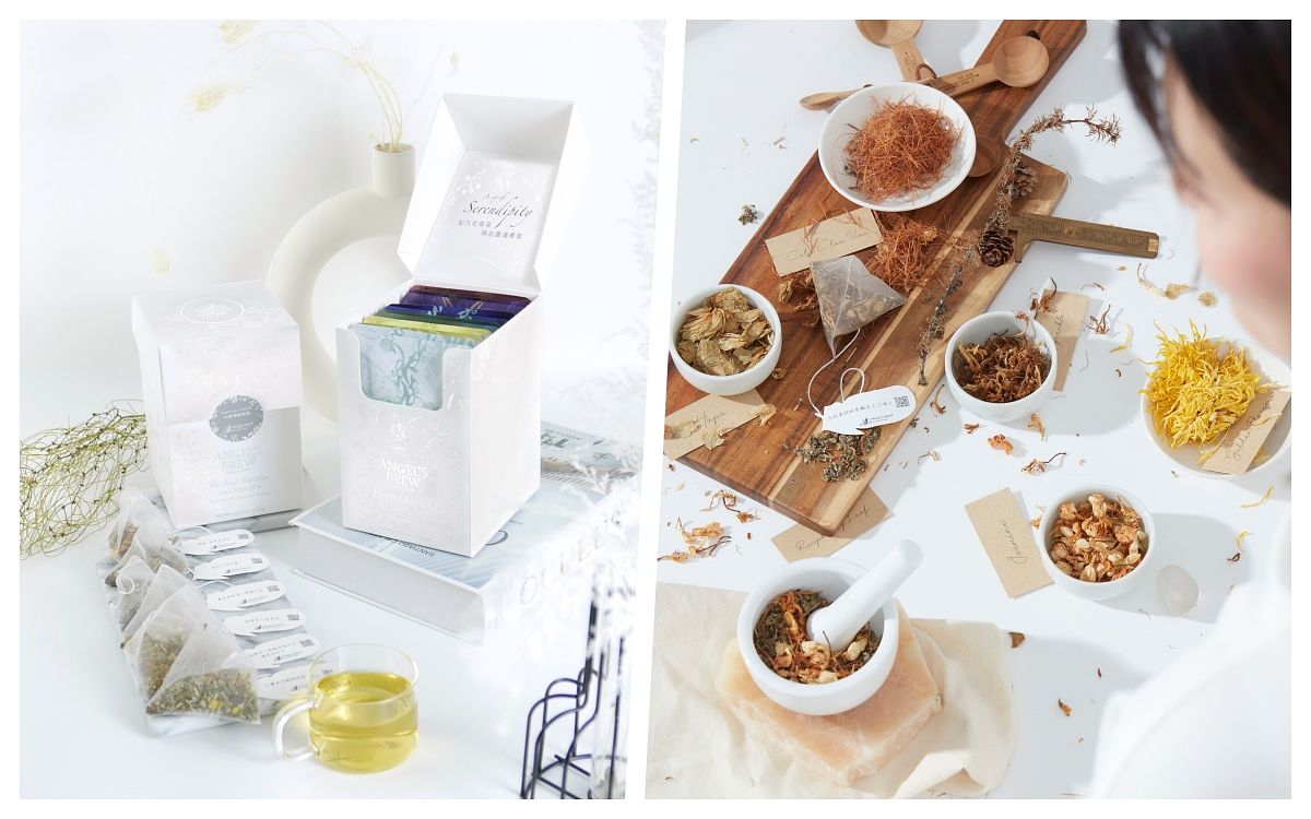 「Angel's Brew天使神諭茶」創辦人Vicky,本身就擁有“進階健康管理師、台灣自然醫學咨詢師、信息醫學咨詢師”等多種專業證照,憑藉自身對草藥的專業知識,協同德國草藥配方師設計6款花草茶,每個茶包都還有不同的籤詩箴言,如同天使神諭。