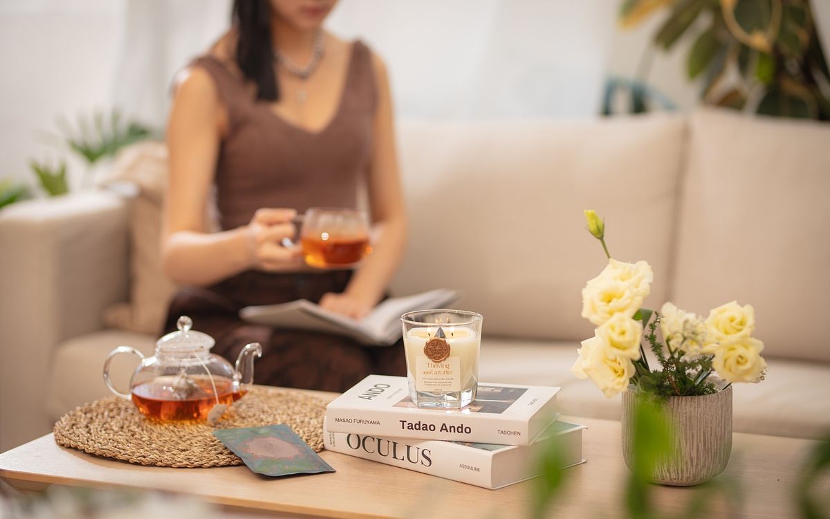 另一款對應「茁壯」花草茶的蠟燭為「青金石能量精油蠟燭」,這2款是專為一日開啟所設計,因為青金石磁場是創造、洞察與表達力。精油蠟燭則添加「馬鬱蘭/芫荽籽/尤加利/雪松/丁香/薄荷」等精油,可提振精神活力、舒緩緊張焦慮及順暢呼吸、淨化環境!