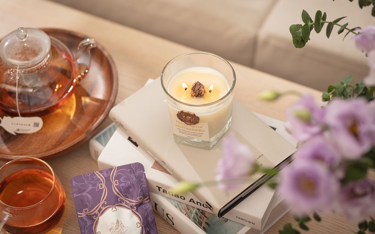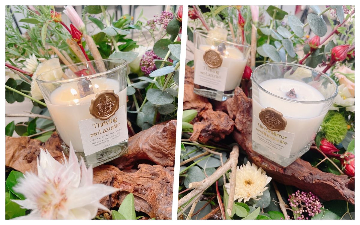 這次針對「茁壯」&「魔鏡」2款花草茶,推出能相對應的寶石能量精油蠟燭,剛好這2款茶品適合早上及晚上,所以加上相對應的蠟燭,即能守護你“晨曦到星夜的心靈”,一邊喝茶,一邊點上蠟燭,利用“口、鼻”引入滿滿植物能量。