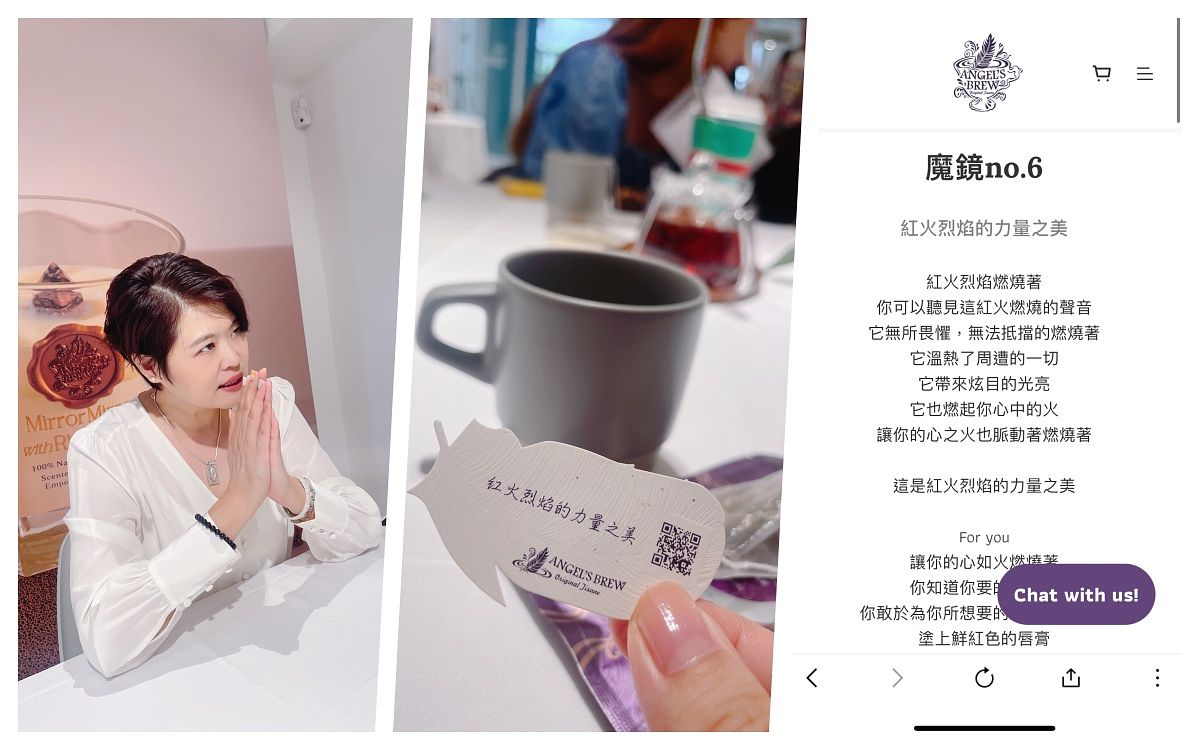 第一件事、當然要先看我抽中什麼“籤詩箴言”?茶品雖然只有6種口味,但“籤詩”可是超過90種喔(持續增加中)!所以同一包茶可能會是不同“籤詩”,我馬上掃進QR Code後、請創辦人Vicky幫我“解籤”,實在太有趣了!我就是個能量多到滿出來的人。