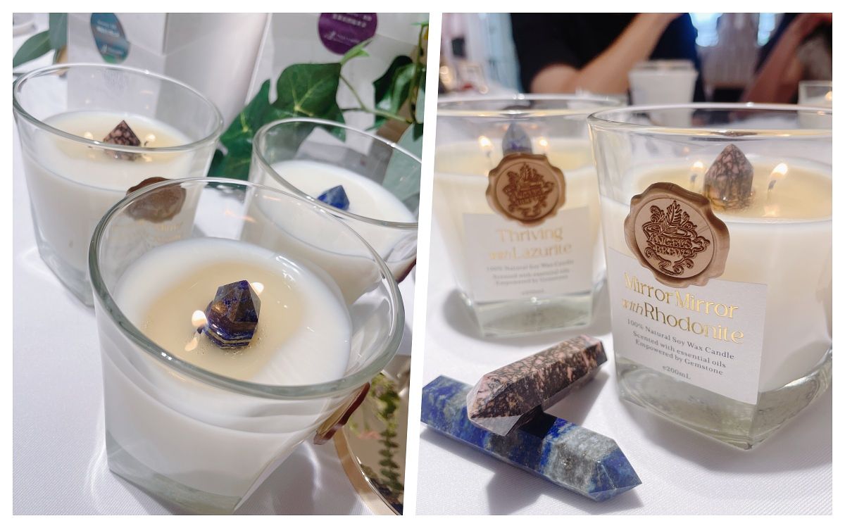 整個空間都是滿滿的精油香,聞不出是哪一種味道,就像進入精油店一樣的感覺,各種精油味道在一起也無違和感。現場的陳列也好美!如果家裡有寵物或小孩,擔心火燭危險的話,也可以選用安全的燭燈。