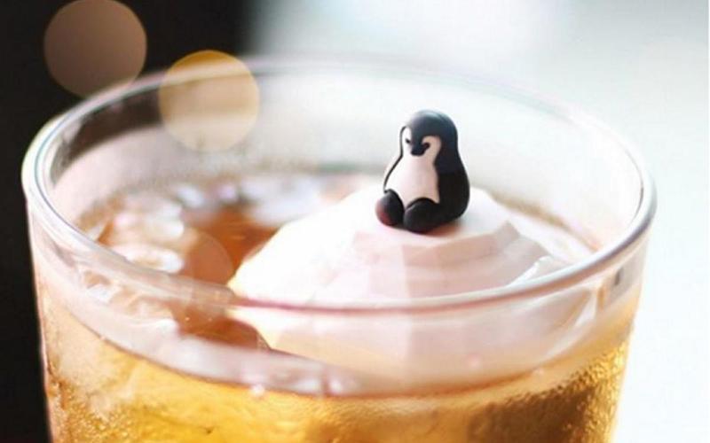 而這隻坐在冰上的企鵝就是近來人氣很紅的泡茶器,如同杯緣子在杯邊(中)賣萌的形象,讓人喝冰茶也沁涼療癒!