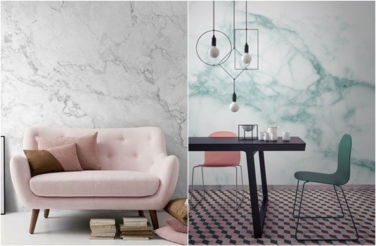 上網搜尋或到壁紙專賣店都可以找到大理石花紋的壁紙,不用昂貴的大理石石材也能有同樣的質感,而且還有各種不同花紋、顏色款式能選擇,V編覺得可以挑選兩種喜愛的款式搭配,經濟效益非常高,也絕對讓人看不出真假呢~