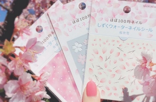 自從光療開始流行之後,女孩們也習慣將指尖染上各式各樣迷人的圖案,隨著日本櫻花季即將來臨,百元商店CanDo推出了一系列櫻花夾心系列的櫻吹雪、夜櫻指甲貼,不需要乾等兩個小時等待美甲師將光療一層層補好補滿,只要一秒鐘就能在家自行轉印指尖!而且一張只要日幣100円就零難度達陣!
