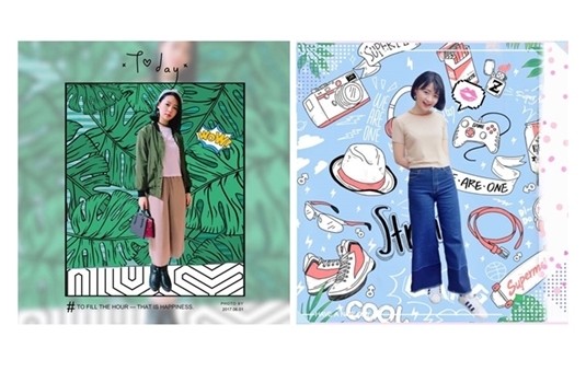這張以插圖漫畫風格的「馬賽克畫筆」,使整體非常活潑。濾鏡使用「遊樂園→摩天輪」,讓膚色更顯白皙!