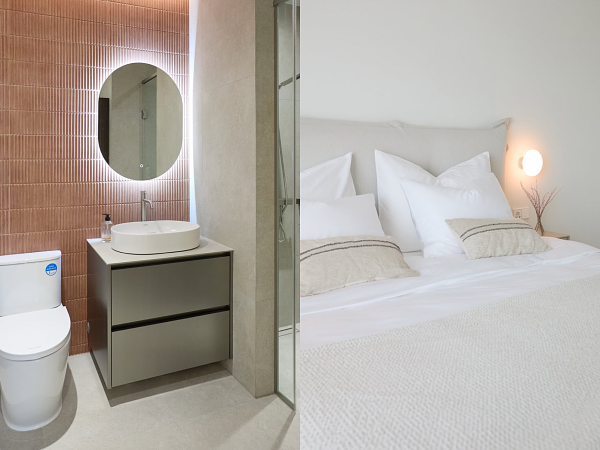 朴智賢分享,玉澤演本身非常喜歡料理,甚至到「每天買完菜再回家、一下班就直接走進廚房」的程度,是真正熱愛下廚的生活人。她笑說,看到玉澤演收藏的各式醬料,連身為主婦的她都忍不住讚嘆。除了開放感十足的廚房,照片中也可見八人座長桌、造型燈飾,以及明亮色調的臥室、衛浴空間,整體視覺乾淨又具設計感,令人眼睛一亮。