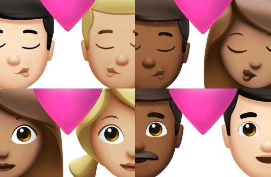 情侶間愛用的接吻和情侶愛心的 emoji, 現在也可以調整膚色!另外,情侶接吻和情侶愛心的emoji 也有了「中性、男男、女女和男女」的多元選項,更與時代並進了!