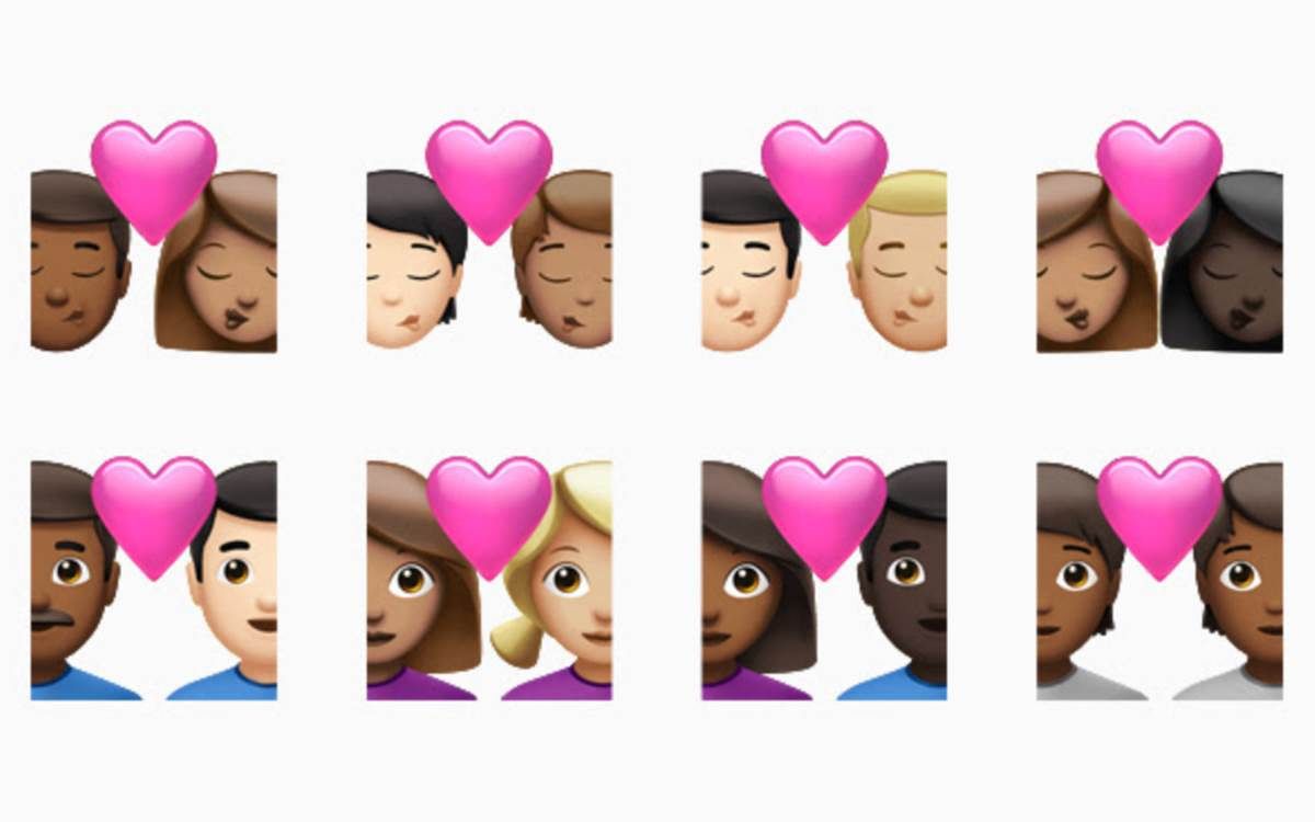 針對伴侶接吻和伴侶愛心的表情符號,使用者現在可以為個別選擇不同的膚色。
