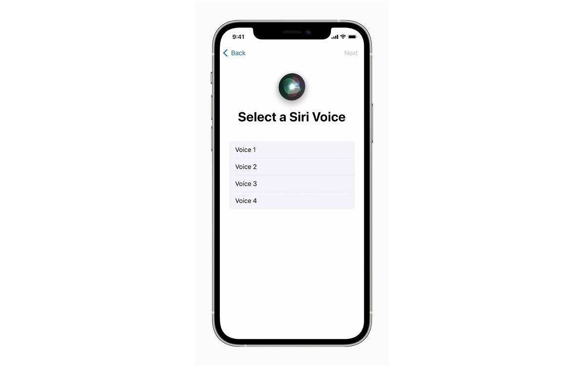 在設定時,Siri 提供兩種以上的聲音選擇,並不再有預設選項,讓使用者主動挑選和他們說話的聲音。
