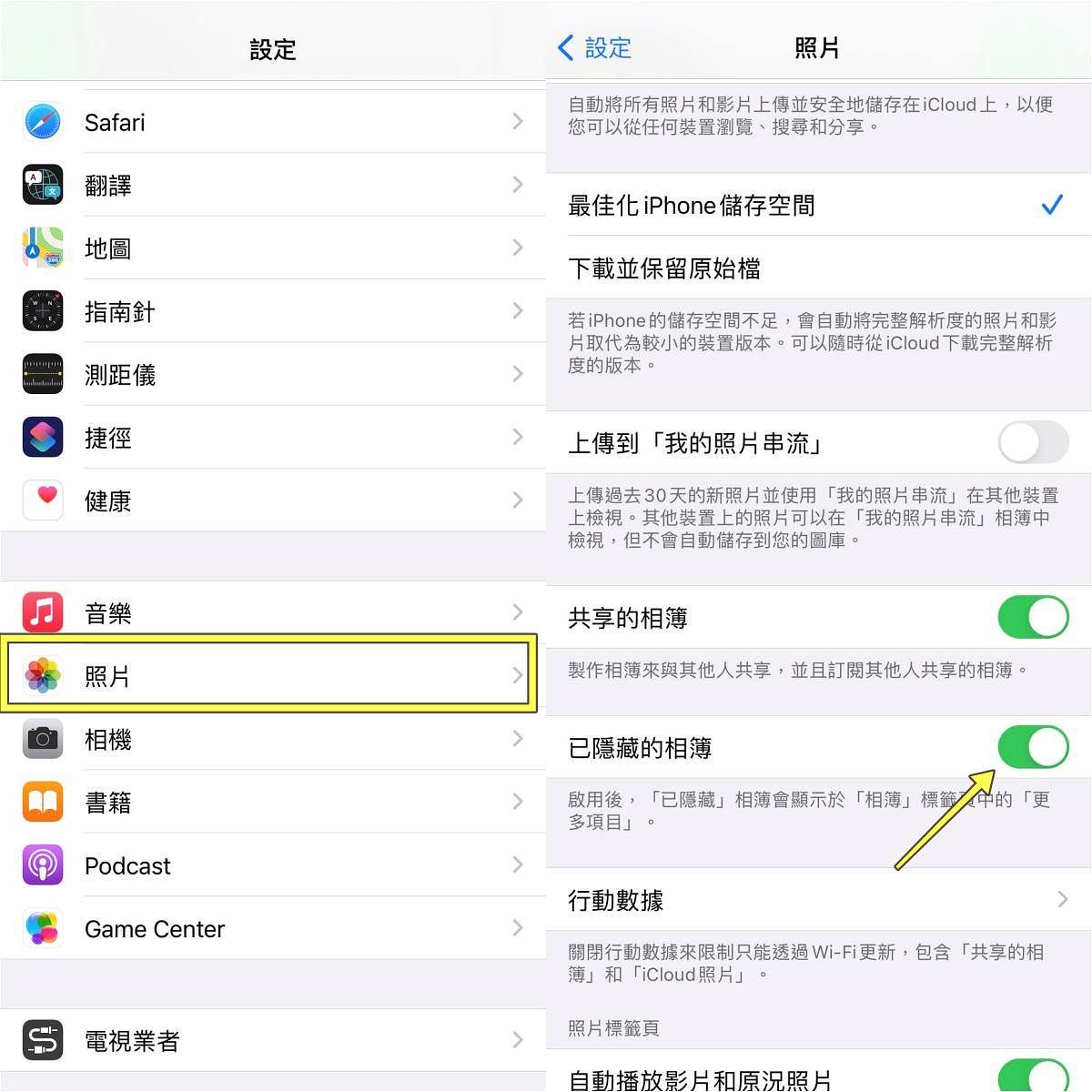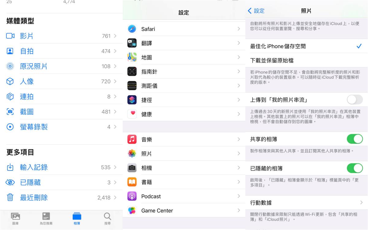 但是不是覺得隱藏的照片只是被移到「隱藏」的相簿哩,根本還是能被輕易點選,有點掩耳盜鈴的感覺?那麼還有更進一步的隱藏設定!到手機「設定→照片→已隱藏的相簿」,把已隱藏的相簿關起來,那麼就不會出現在更多項目裡囉!