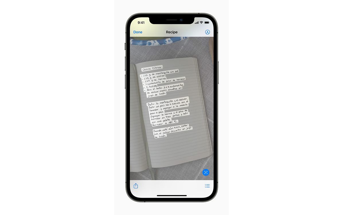 「原況文字」運用裝置端的智慧技術辨識照片中的文字,並讓使用者採取進一步行動。例如,使用者可以搜尋找出一張手寫家族食譜的照片,或擷取店面招牌上的電話號碼,並附有撥打電話的選項。透過 Apple 神經網路引擎的能力,「相機」app 也可以快速在當下辨識並擷取文字,例如社區咖啡廳牆上寫的 Wi-Fi 密碼。使用者可利用「圖像查詢」獲得有關世界各地流行的藝術或地標、自然界的植物花草、寵物品種的相關知識,甚至可搜尋圖書著作。