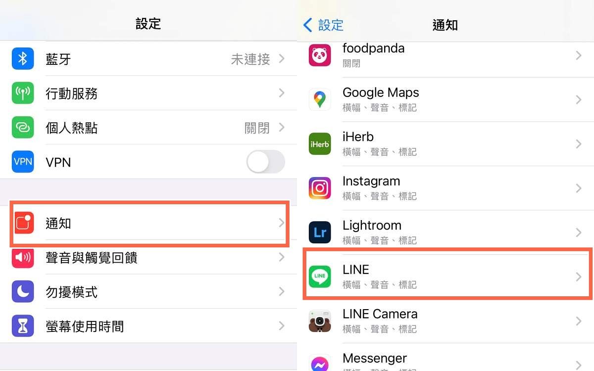 HOW TO:進入設定→選定APP(編輯以LINE示範)→關掉標記,三個步驟就能把單一的程式通知關閉喔!