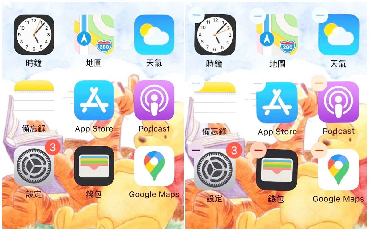 iPhone裡的時鐘圖示,正規時候時鐘的秒針是用滑步的方式在走,但是當進入「編輯主畫面」狀態,秒針就會變成滴答滴答、一格一格的方式在走唷!(覺得莫名可愛啊)
