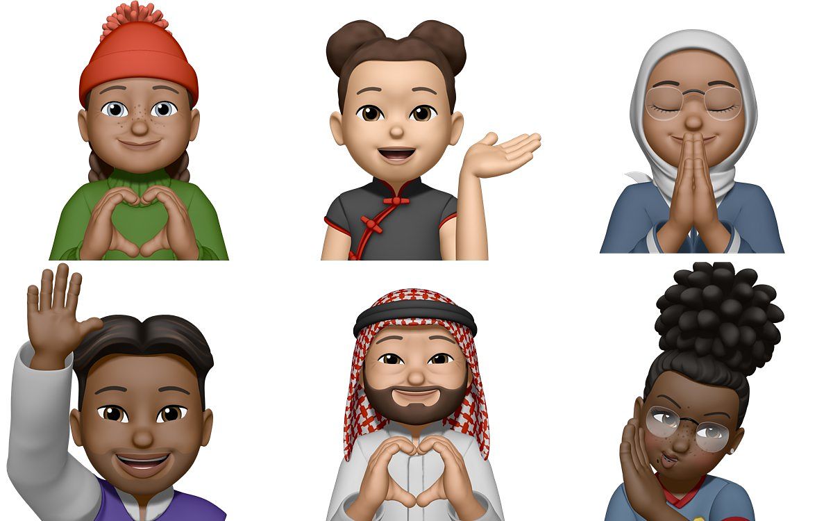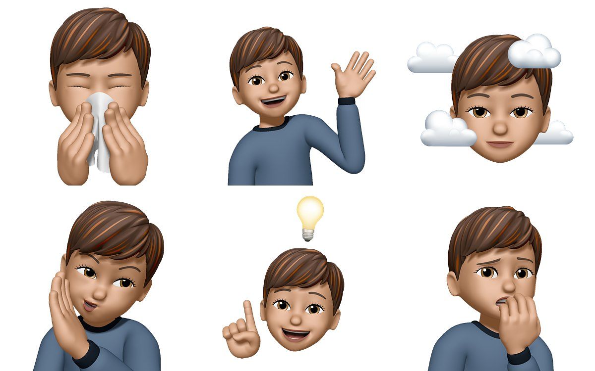 服裝: 使用者現在者選擇超過40套不同的服裝來展現自己的風格, 表達心情,或是根據季節更換,使用者還可以搭配自己選擇的肢體動作,打造專屬於你的上半身 Memoji 貼紙