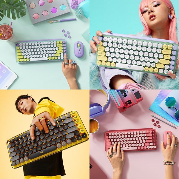 Logitech POP KEYS無線機械式鍵盤共有三款顏色,「夢幻紫」以莫蘭迪色為基底,粉綠、淡紫、白色搭配溫黃,甜美配色如同美味糖果,夢幻爆擊你的心;「魅力桃」為霓虹珊瑚粉搭配覆盆子莓紅,浪漫配色讓人一秒心動,愛不釋手;「酷玩黃」為經典街頭黃搭配黑灰兩色,展現出眾個性。