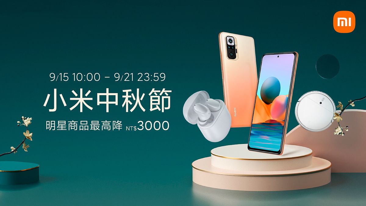 • 購買擁有6.43 吋 AMOLED 大螢幕、6400萬像素 AI 四鏡頭相機及5,000mAh大電量的「Redmi Note 10S」直降新台幣$1,000元,優惠價只要新台幣$5,999元,領券最高再折新台幣$300元。
