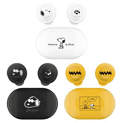 這款無線藍牙耳機共有三款顏色,純白簡約的史努比、酷酷可愛的純黑史努比、以及加入了查理布朗的活潑黃色,入耳式的耳機十分小巧。