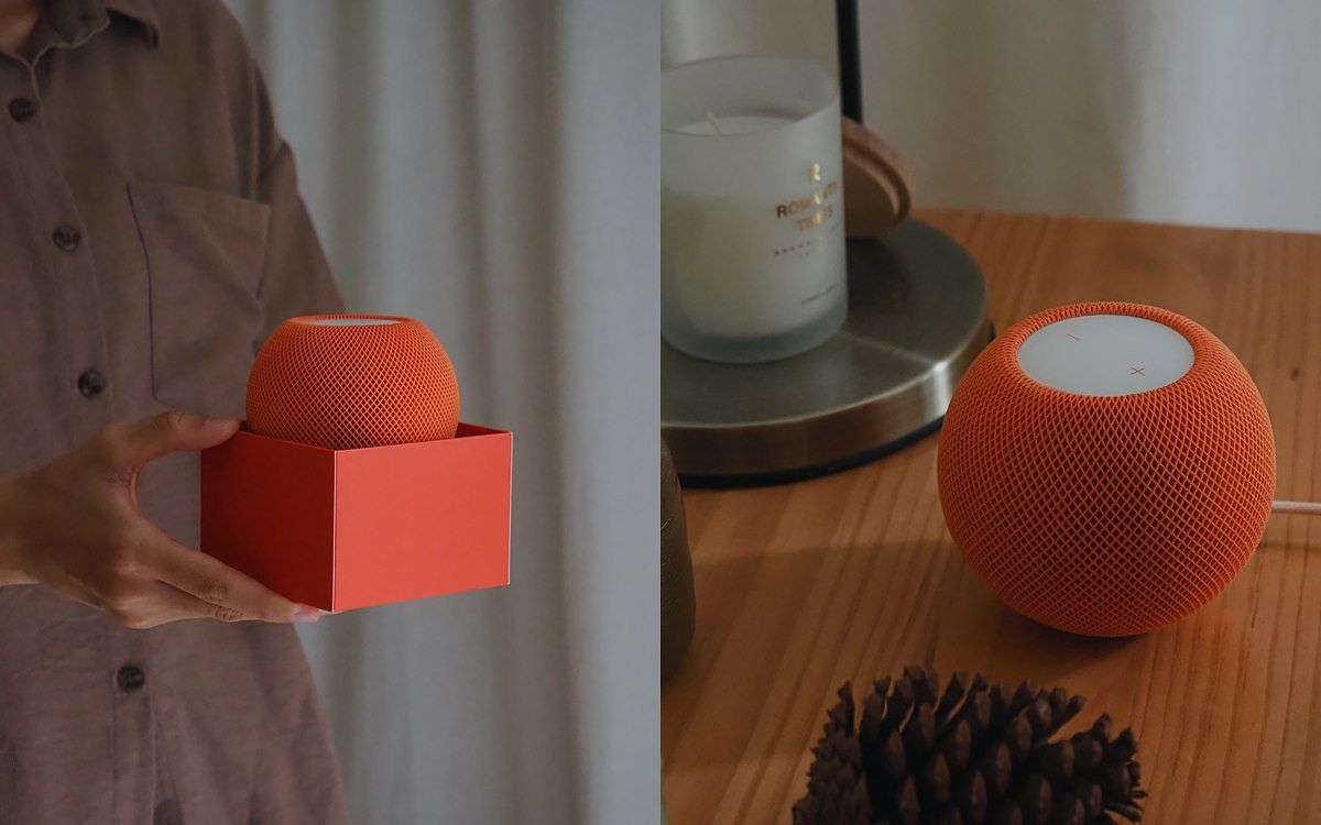 總共黑、白、藍、橙、黃五色選擇,繽紛且以網狀織物的包覆外觀,點綴氛圍放在家裡任一角落都合適,藍和橙撞色的搭配也符合 Michael 爽朗的性格,擠擠認為 HomePod mini 不只送上 360 度的音樂體驗,更營造出她理想的智慧家庭生活,即便看不見,其實自已一直都在家裡的每個角落陪伴對方,推薦給喜歡用理性表達愛,以實用性包裹溫暖的送禮人。